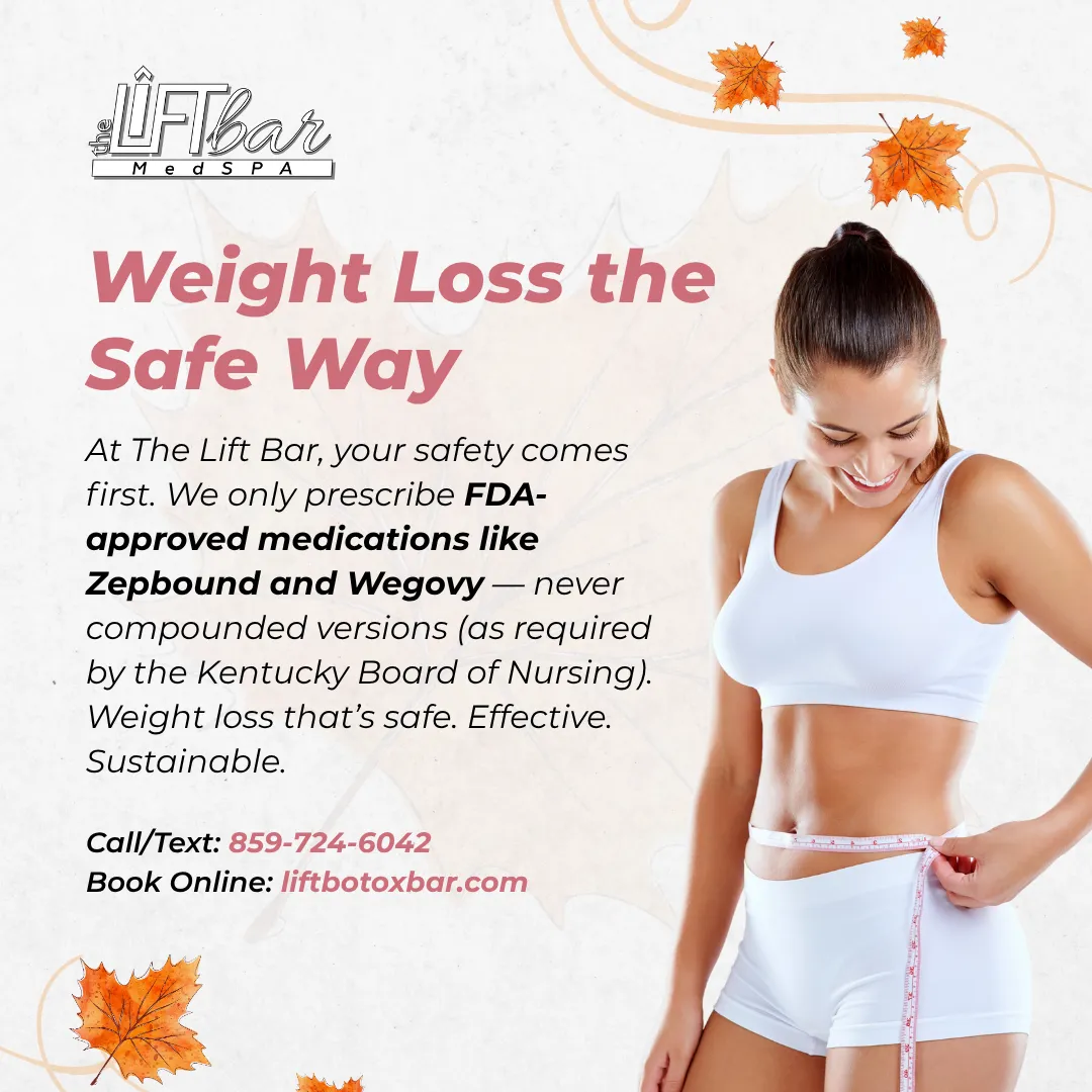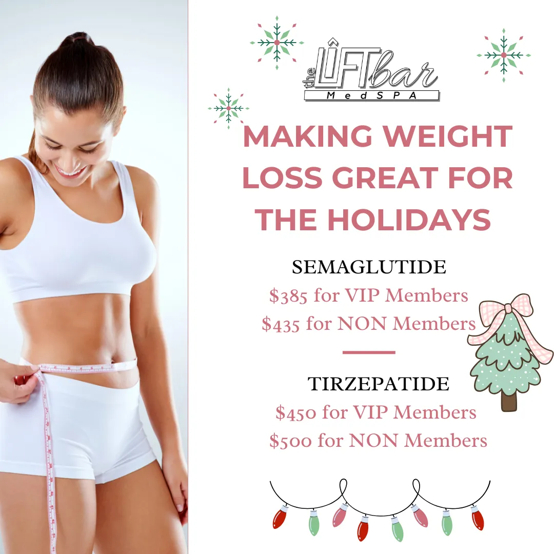 The Lift Bar Medspa offers a comprehensive range of weight loss services designed to help you achieve your health goals safely and effectively. Our offerings include innovative weight loss shots, which are self-administered once a week. These shots work by suppressing appetite, reducing cravings, and supporting healthy blood sugar and cholesterol levels with minimal side effects. Additionally, we provide specialized injections that target and dissolve stubborn fat deposits, further enhancing your weight loss journey.