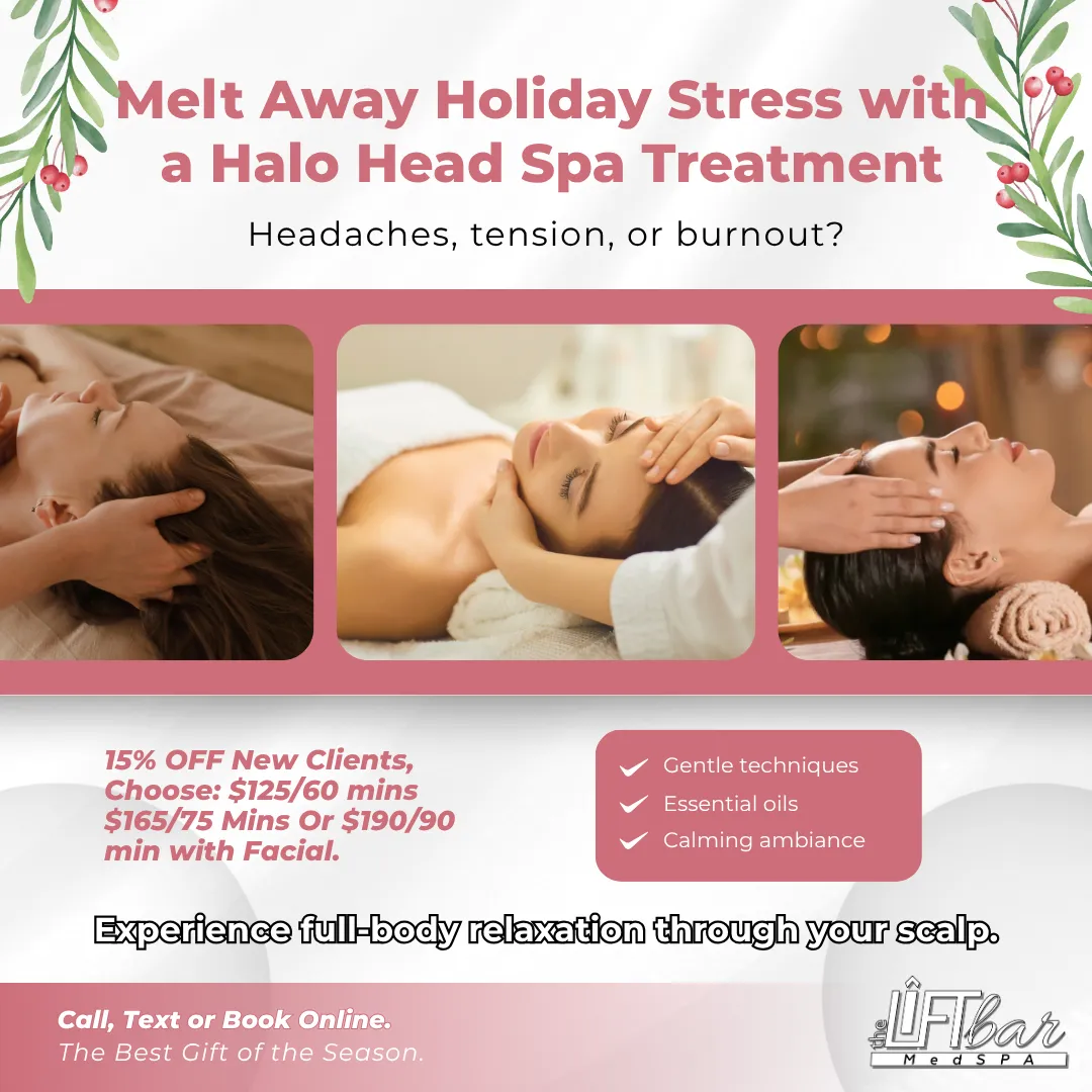 At The Lift Bar Medspa, our Head Spa Scalp Treatments are designed to rejuvenate your scalp, promote healthy hair growth, and create a deeply relaxing experience. Using advanced techniques and professional-grade scalp care products, our licensed esthetician provides a customized service that addresses dryness, buildup, and scalp imbalances while helping you unwind.